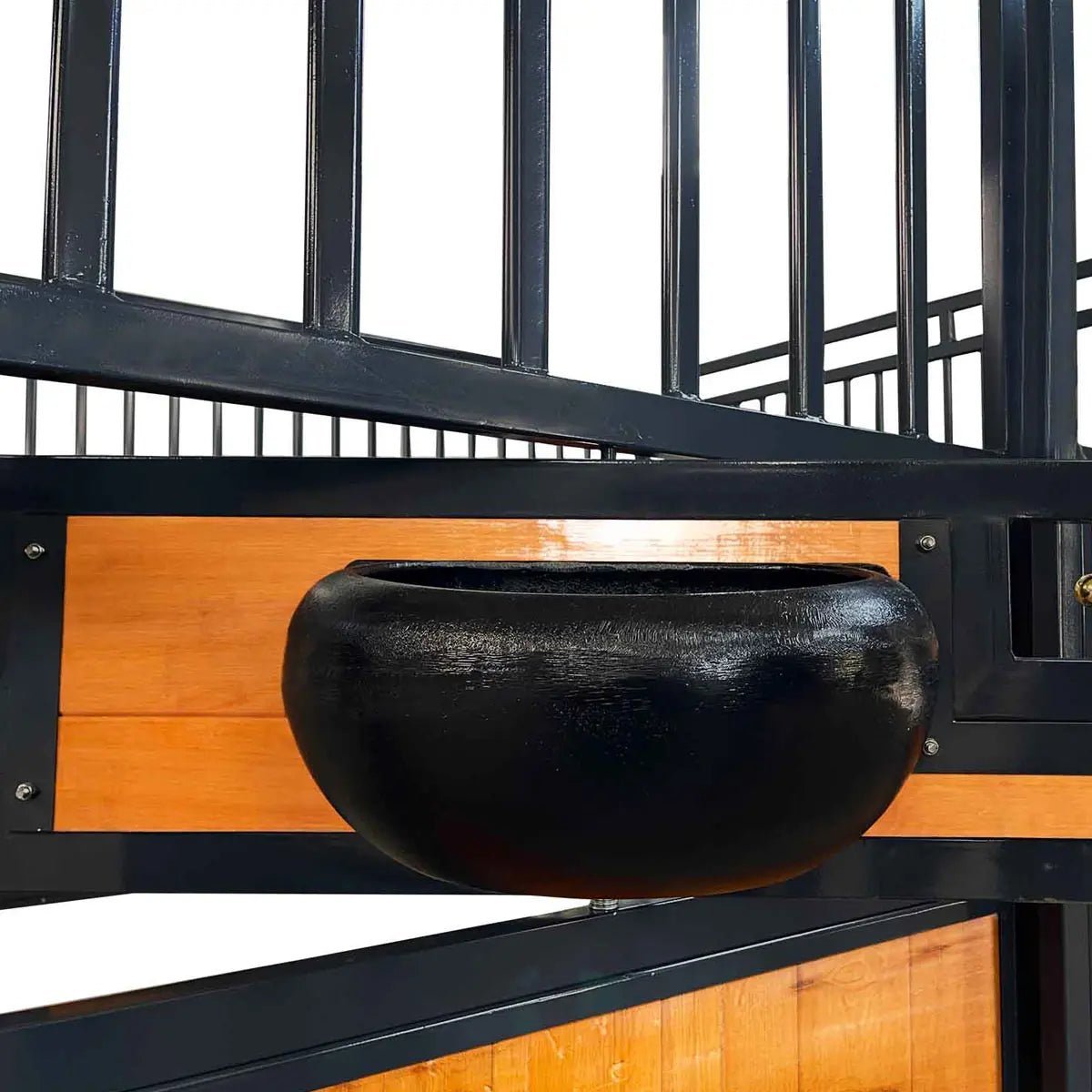 For added convenience and functionality, the front panel with the sliding door includes a window that securely locks with a double-gravity latch. The window can fold flat along the front of the stall, making it easier for handlers to move around, reducing the risk of injury to the horses. The opening on the panel can accommodate either a window or a feeder, allowing you to customize to suit your needs.