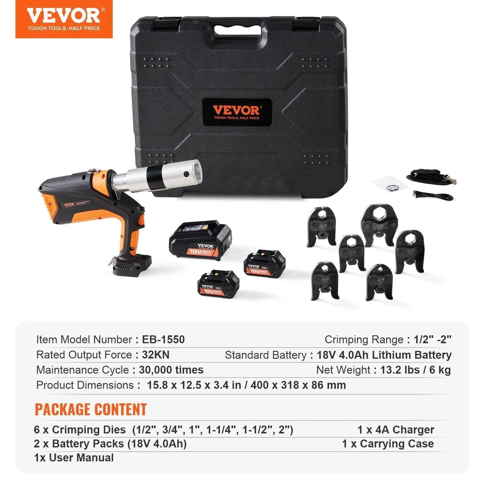 18V Electric Pro Press Tool, 1/2″–2″ Pipe Capacity, 360° Rotating Crimper, Brushless Motor with 6 Jaws, DOBA-PT18
