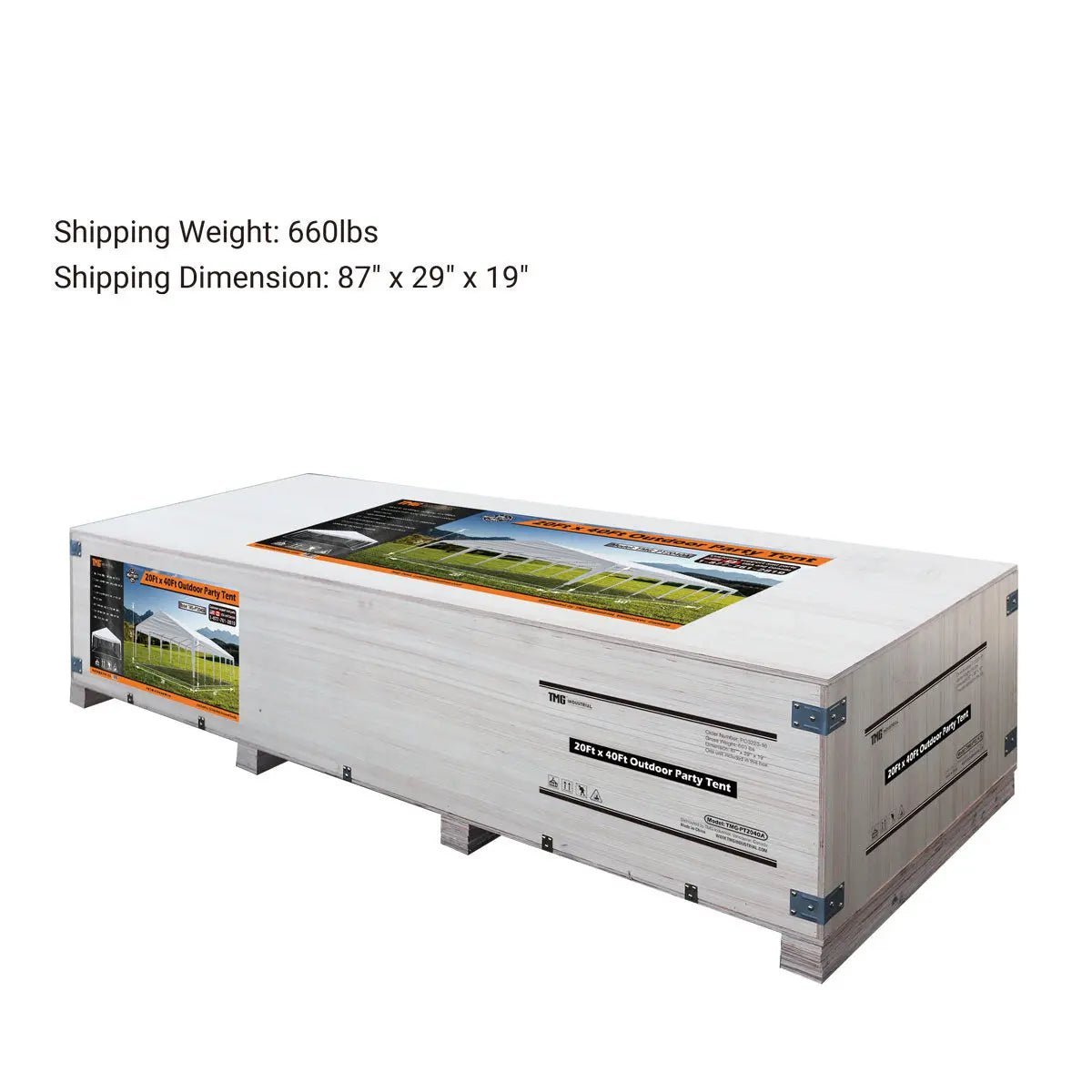 20′ x 40′ Heavy Duty Outdoor Party Tent, PE tarpaulin fabric, 6’6″ Overhead, 10’ Peak Ceiling, TMG-PT2040A