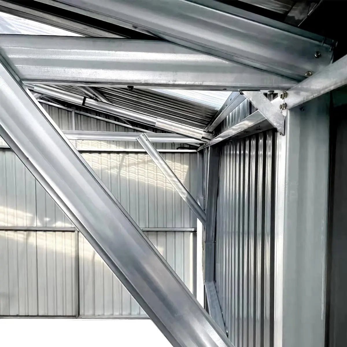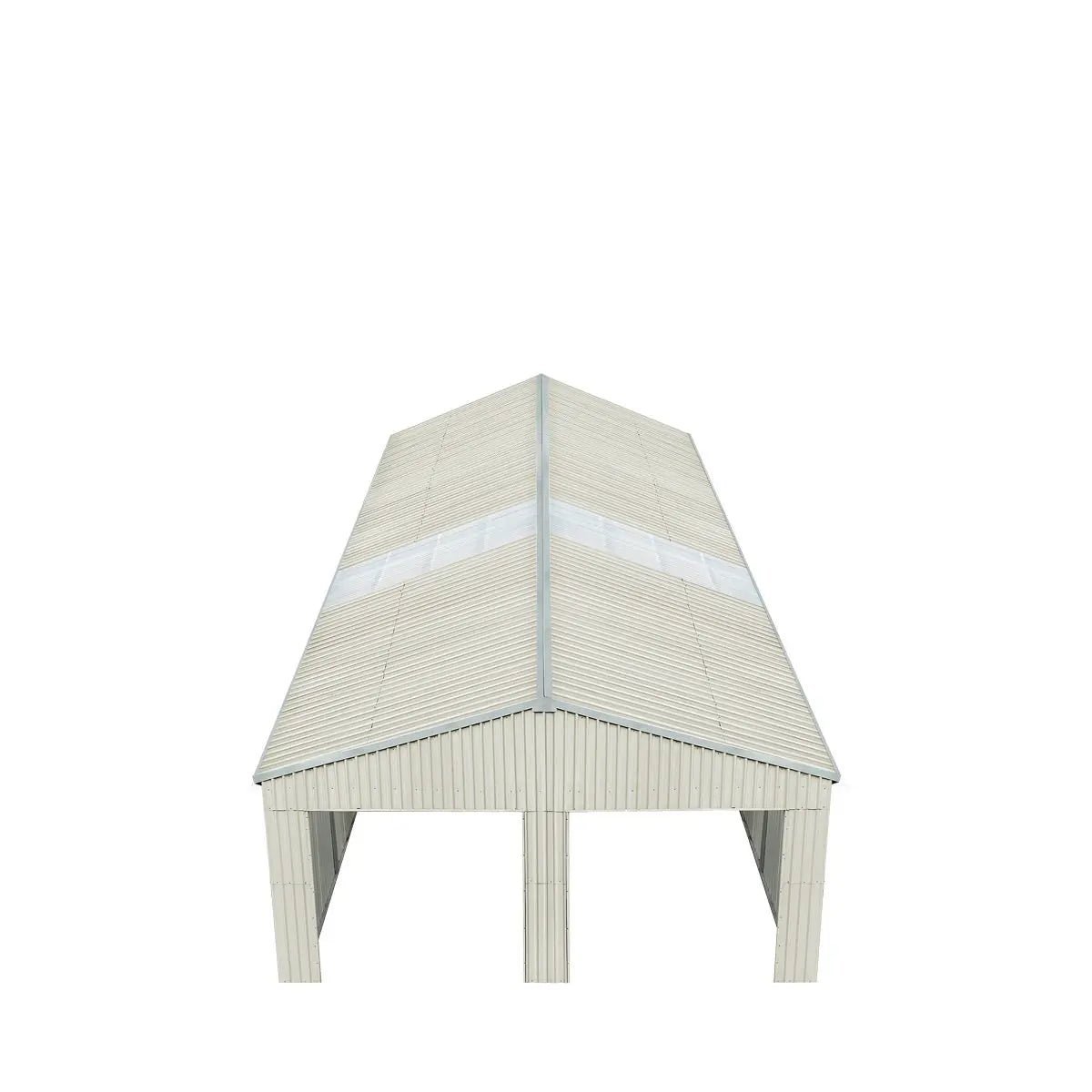 A sloped gable roof helps to prevent water build up on those cloudy winter days. L-shape brackets with sleeve anchor bolts installation makes this structure easy to install on any solid wood platform or concrete slab. Immediately increase the value of your property by adding to it this metal garage which is only a fraction of the cost compared to building a similarly sized structure.