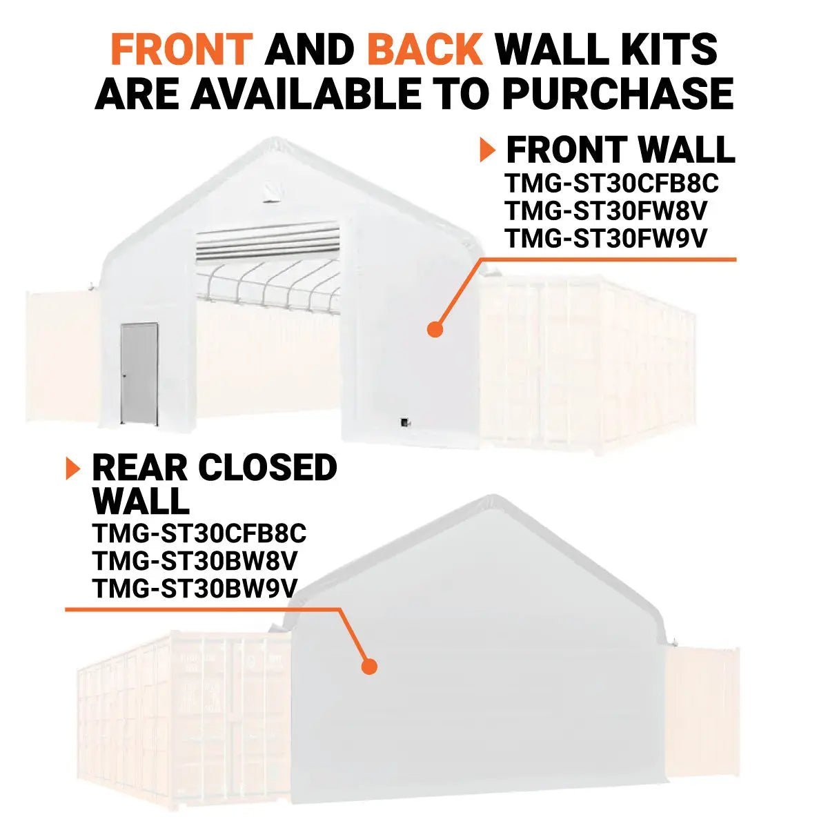 The TMG-ST3040CE PE Fabric Container Shelter provides an easy to assemble, durable outdoor storage solution or workshop for your farm, construction site, equipment dealership and more.
