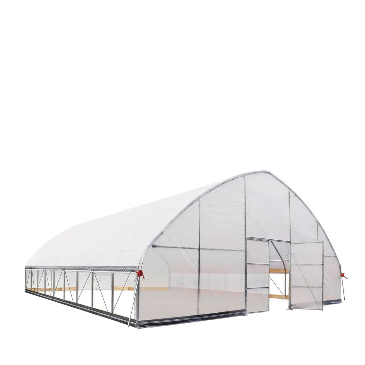 Included wiggle wires make securing the plastic film overtop of the frame and into the aluminum lock channels simple and easy to do. Your plants will have plenty of room to grow and flourish under the approximately 1200 sq-ft of covered space. Solar energy will seep through from all angles and be stored in the soil and inside the structure for a beautiful, budding ecosystem.