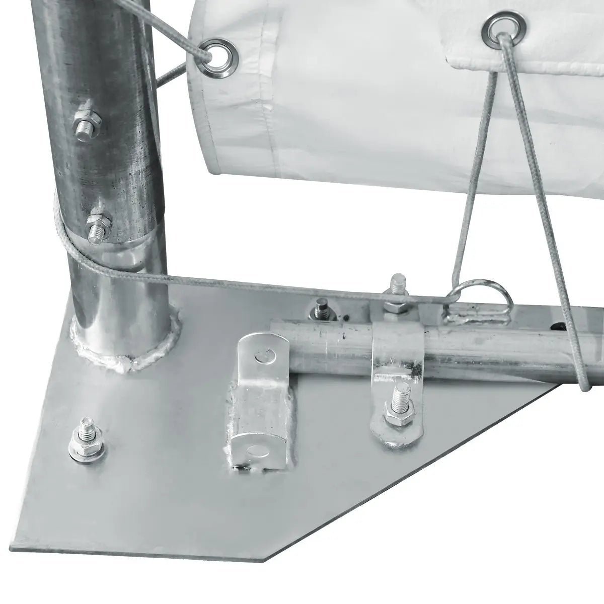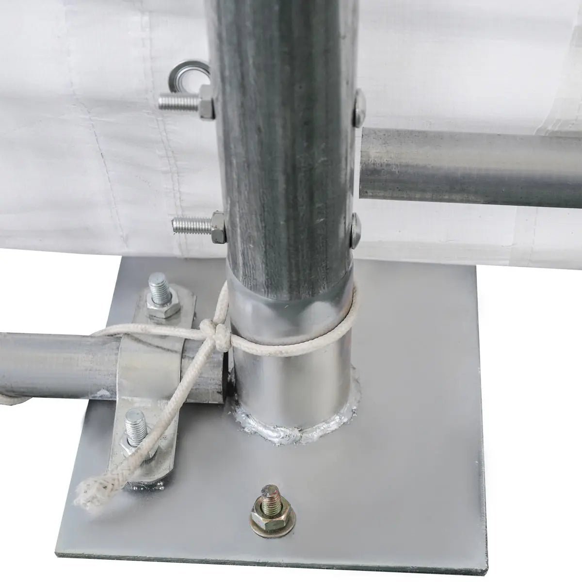Made of strong, heavy-duty commercial grade polyvinyl chloride (PVC) fabric that is triple layered to prevent tearing and provide a long-lasting shelter covering for many years to come. This fabric is a natural flame retardant, commonly used in large commercial structures such as sports stadiums and event halls. The first 7 ft of each side is a straight wall which amplifies storage space along the edges. 90 roof purlins also run throughout the whole interior of the structure which reinforces it for exceptional durability and stability.