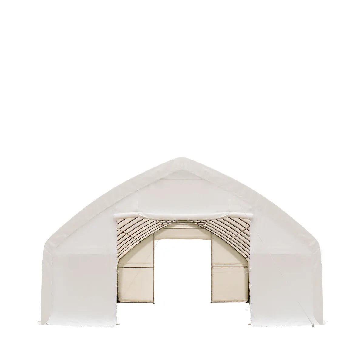 30′ x 50′ Straight Wall Peak Ceiling Storage Shelter with Heavy Duty 17 oz PVC Cover & Drive Through Doors, TMG-ST3050V