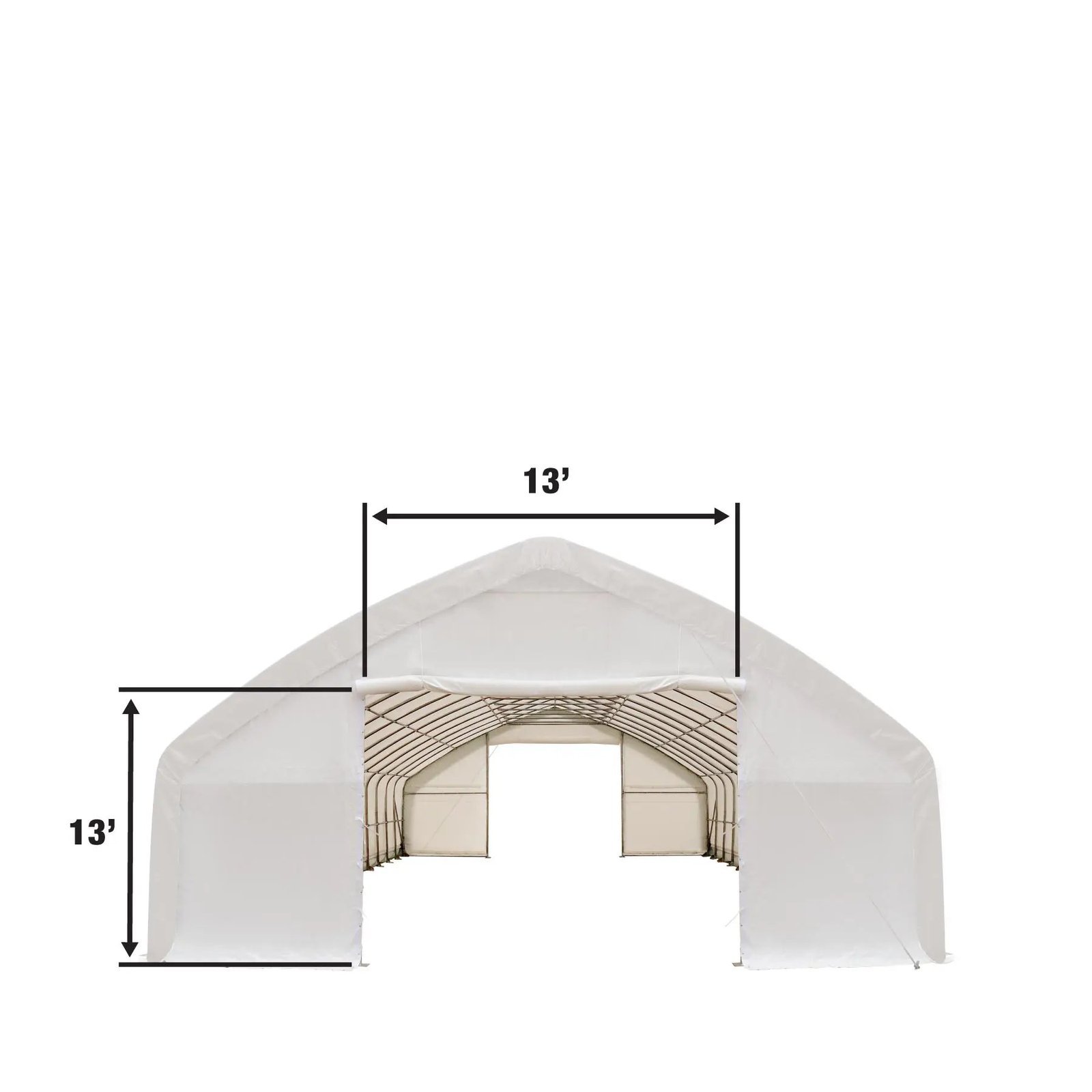 Roughly 13′ of entry and exit space on both endwalls provides a huge opening to allow workflow coming in and out. Use this shelter as storage for tools, large equipment, ongoing jobs, maintenance and mechanical labour. The PVC fabric is very tough and comes in a vibrant white colour that reflects UV rays but allows light to permeate through. The natural illuminating quality will help you save on utility costs and provide all day use even when it’s cloudy.