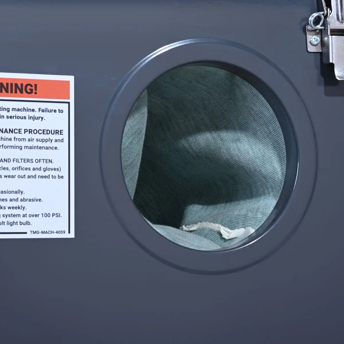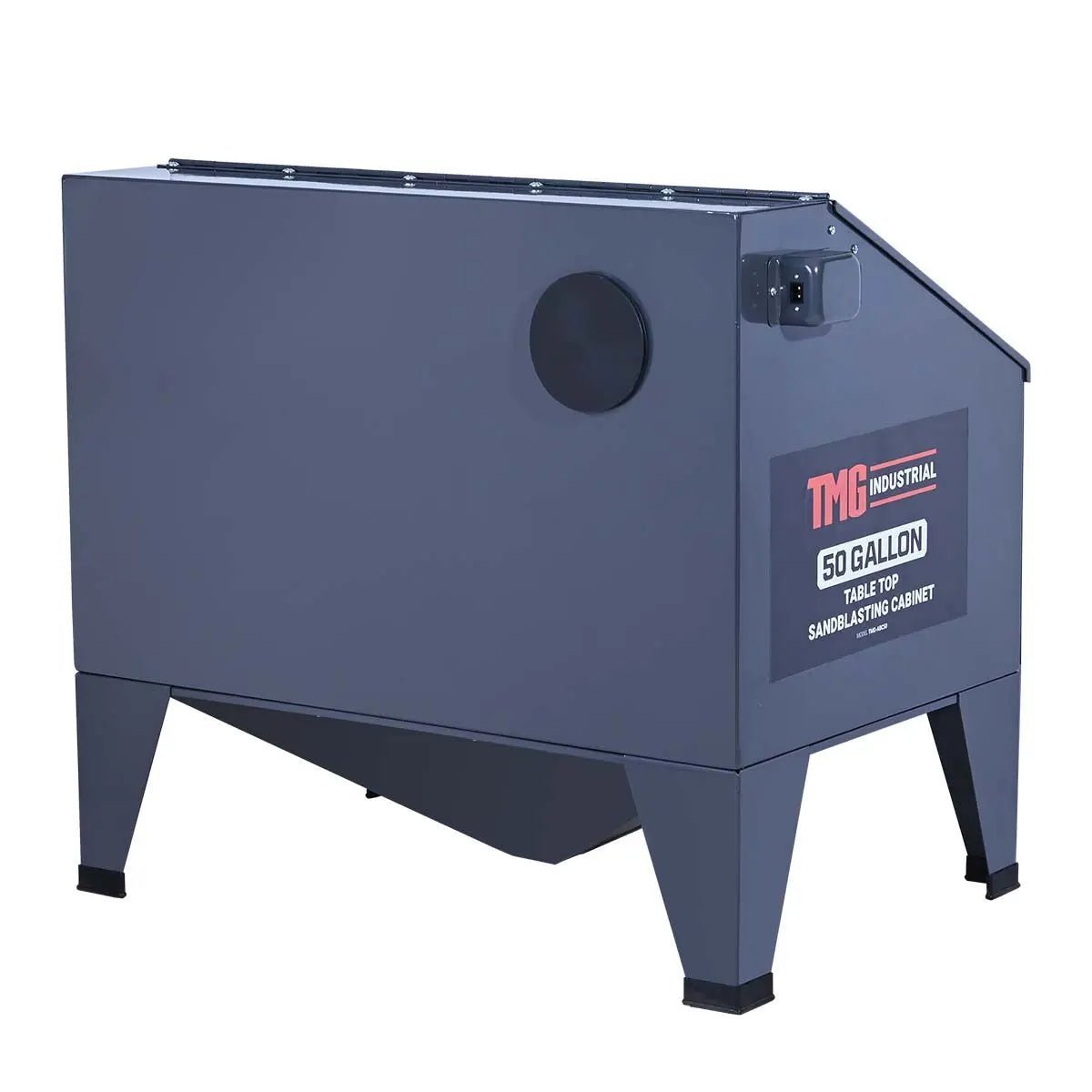 The TMG-ABC50 Top-Open Bench Top Abrasive Sandblaster has a 50 gallon capacity and allows you to effectively blast small objects like parts and tools in a contained environment that controls mess and cleanup. Ideal for removing paint, rust, corrosion, scale, surface oxidation and more. Sealed rubber gloves allow you to handle intricate objects while they’re being processed in a manner not possible with larger, open sandblasting setups.
