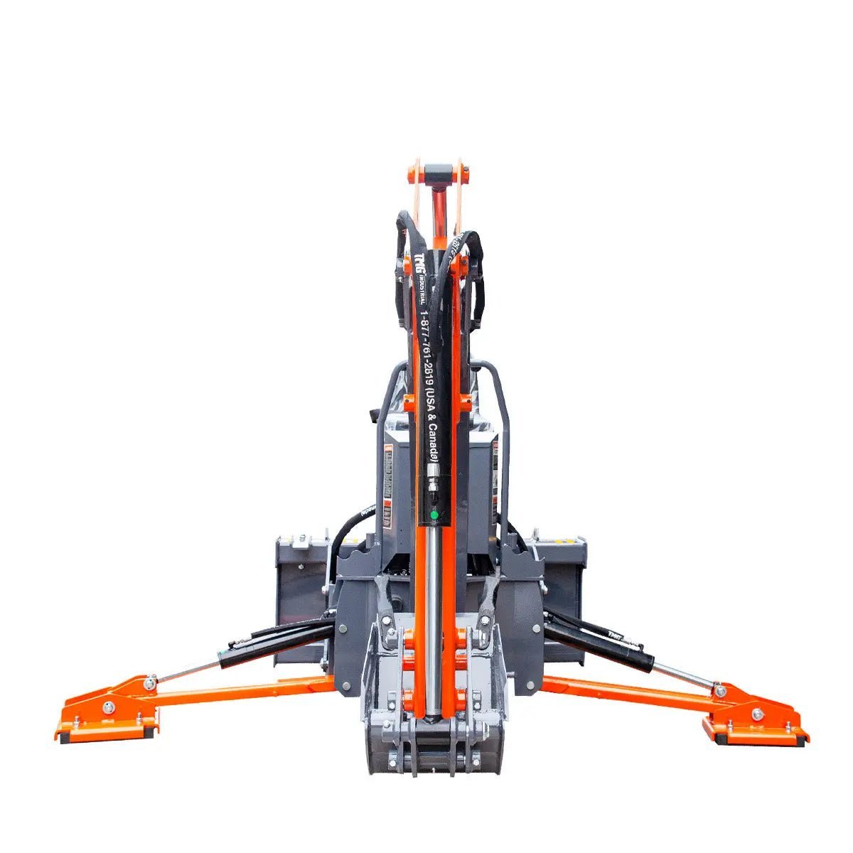 The TMG-SBH55 8-ft Skid Steer Swing Backhoe Attachment is a great tool for all your digging and excavation needs. With a digging depth of 7’8″, it is designed to truly revolutionize your productivity and efficiency on the job. It has a dynamic reach capacity in all directions, allowing you to cover a large area without the hassle of constantly relocating your setup. Compatible with 30-60 HP skid steers, it comes complete with a 12″ bucket, making it perfect for tasks like digging ditches, installing sprinkler systems, and landscaping projects.