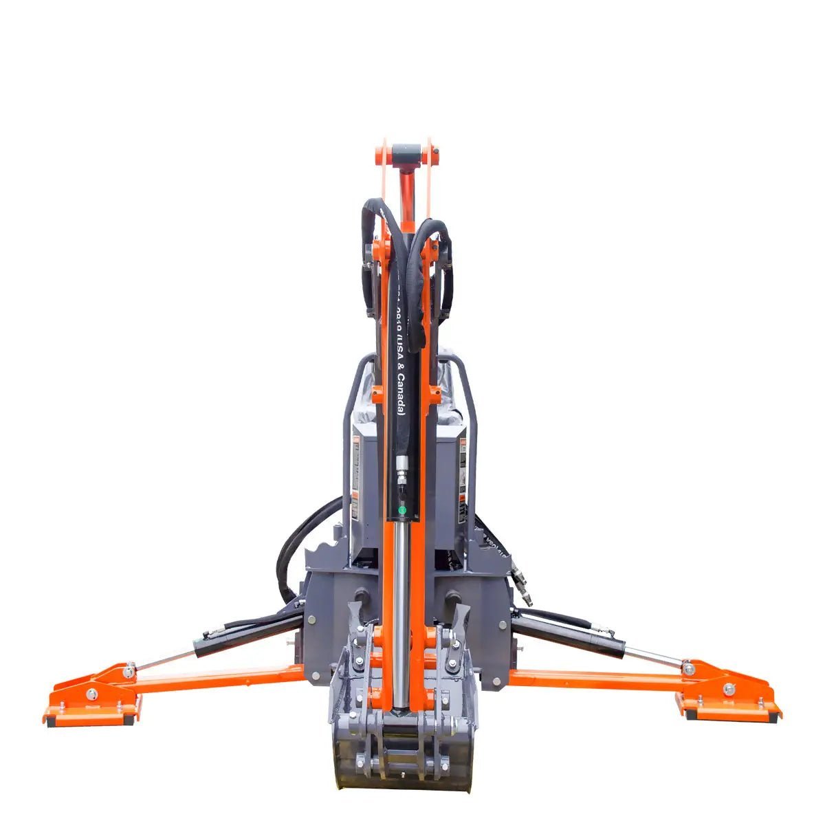 Maintenance is made easy with replaceable bushings, replaceable bolt-on cast teeth, and grease fittings on all pivot points. The stabilizer legs are designed with removable/replaceable rubber street pads to prevent damage to lawns, blacktop and concrete. For tractors not equipped with hydraulic auxiliary system, an optional external self-contained hydraulic pump is also available for efficient energy transmission and to maximize digging force (sold separately).