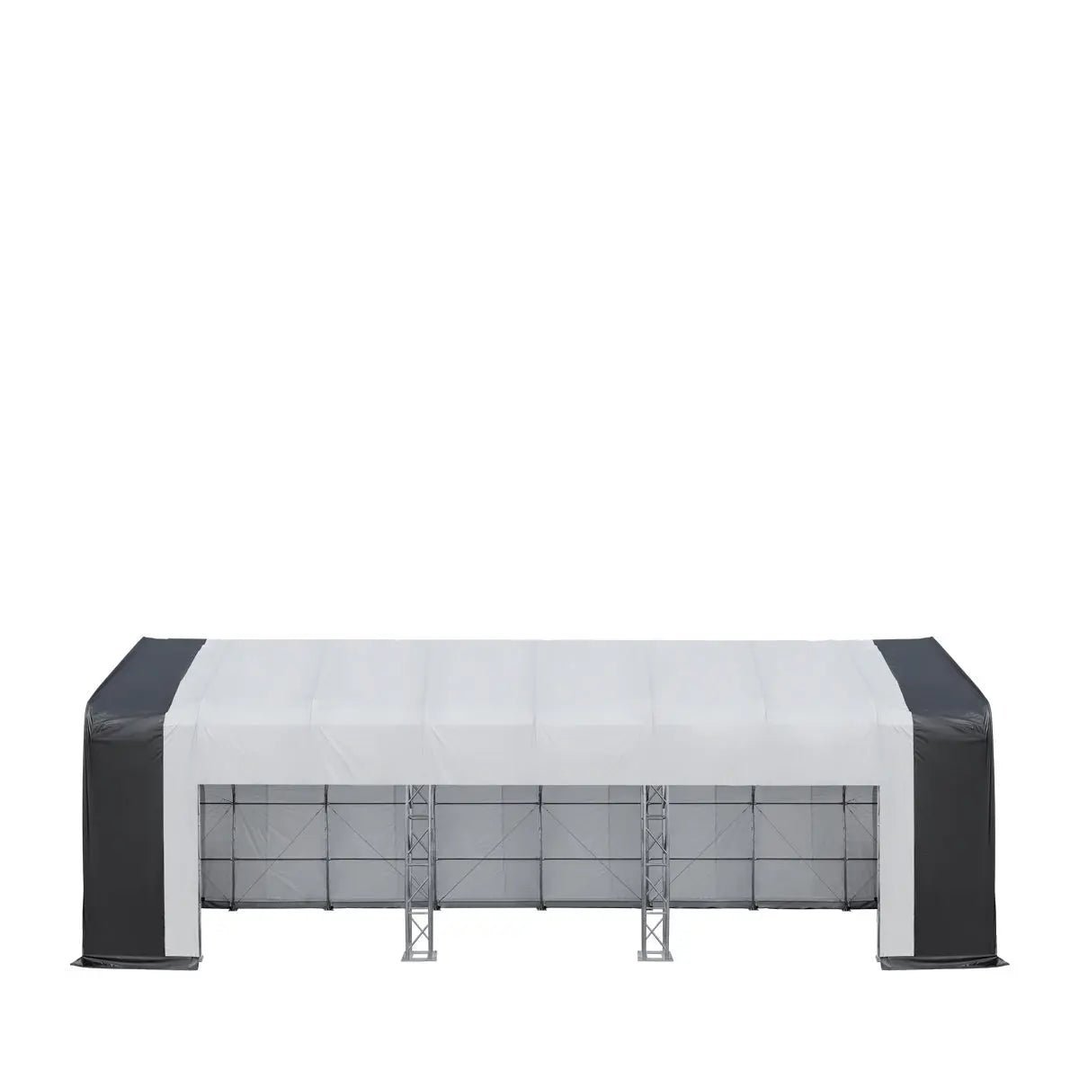Built for durability, the shelter boasts a sturdy dual truss frame and heavy-duty galvanized steel tubes on all trusses and purlins. The rectangular scaffolding-style support columns ensure a resilience structure that can hold its own, even in demanding work environments. With a quick relative assembly time and cost-effectiveness compared to similar structures, this model is a valuable investment that will serve you well for years to come.