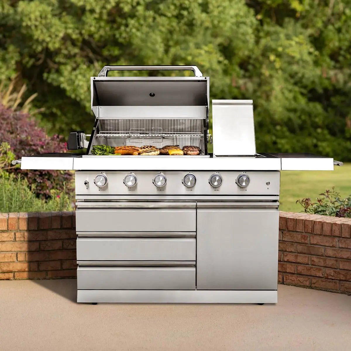 Electronic ignition ensures a hassle-free start to every occasion. 4 powerful main burners, a rear burner, and a side burner all deliver reliable, even, and precise heat so you can get the right result every time. Taking your cooking to a whole new level—invest in the TMG-LKS06.