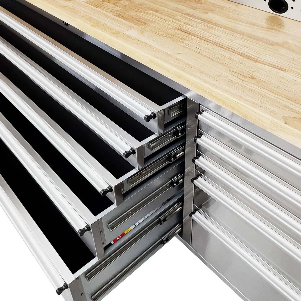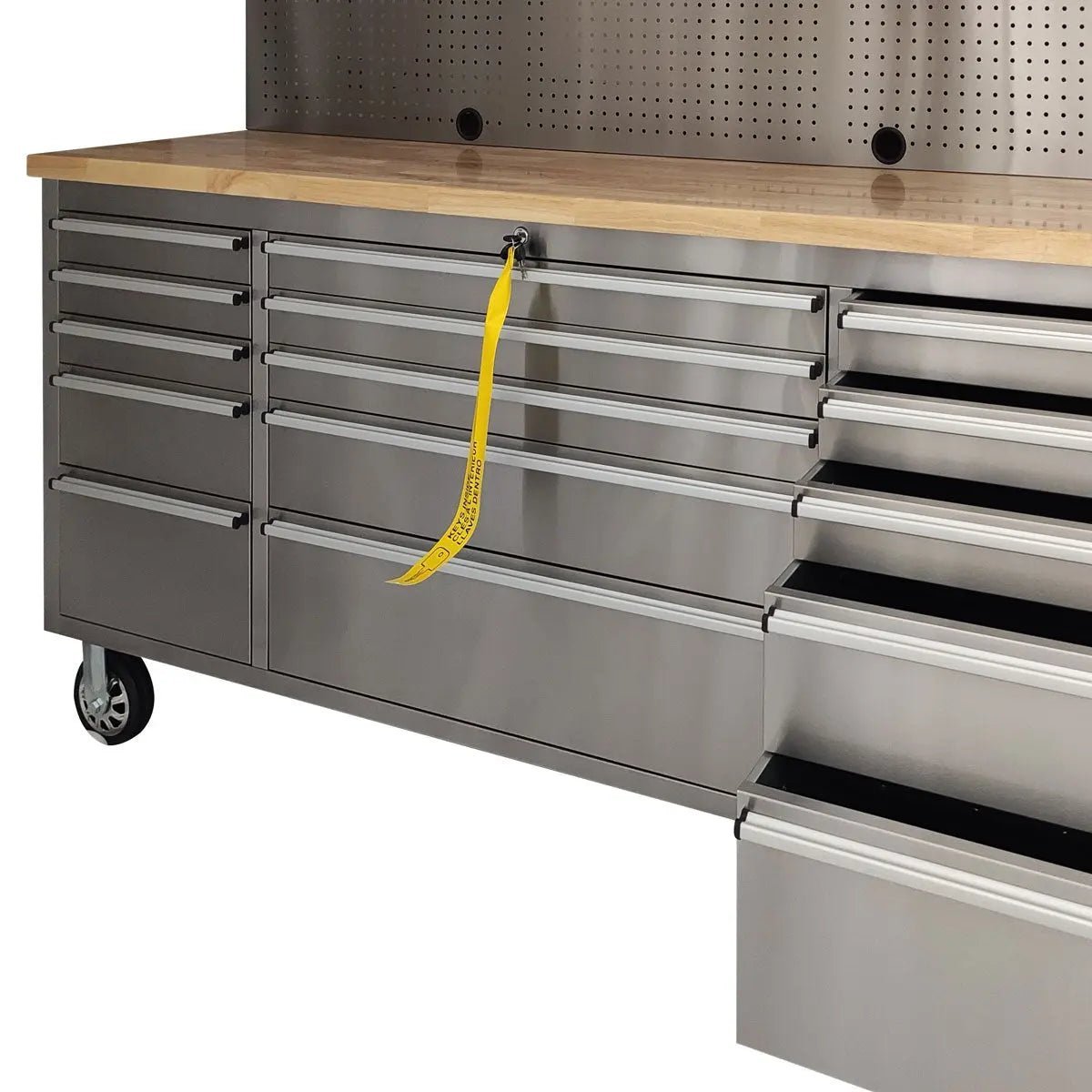 Also includes a full-length pegboard, drawer handles and pre-cut inner drawer liners to protect the bottom surfaces from scratch and wear. Complete organization, work space and secure storage for your hardware, parts and tools.