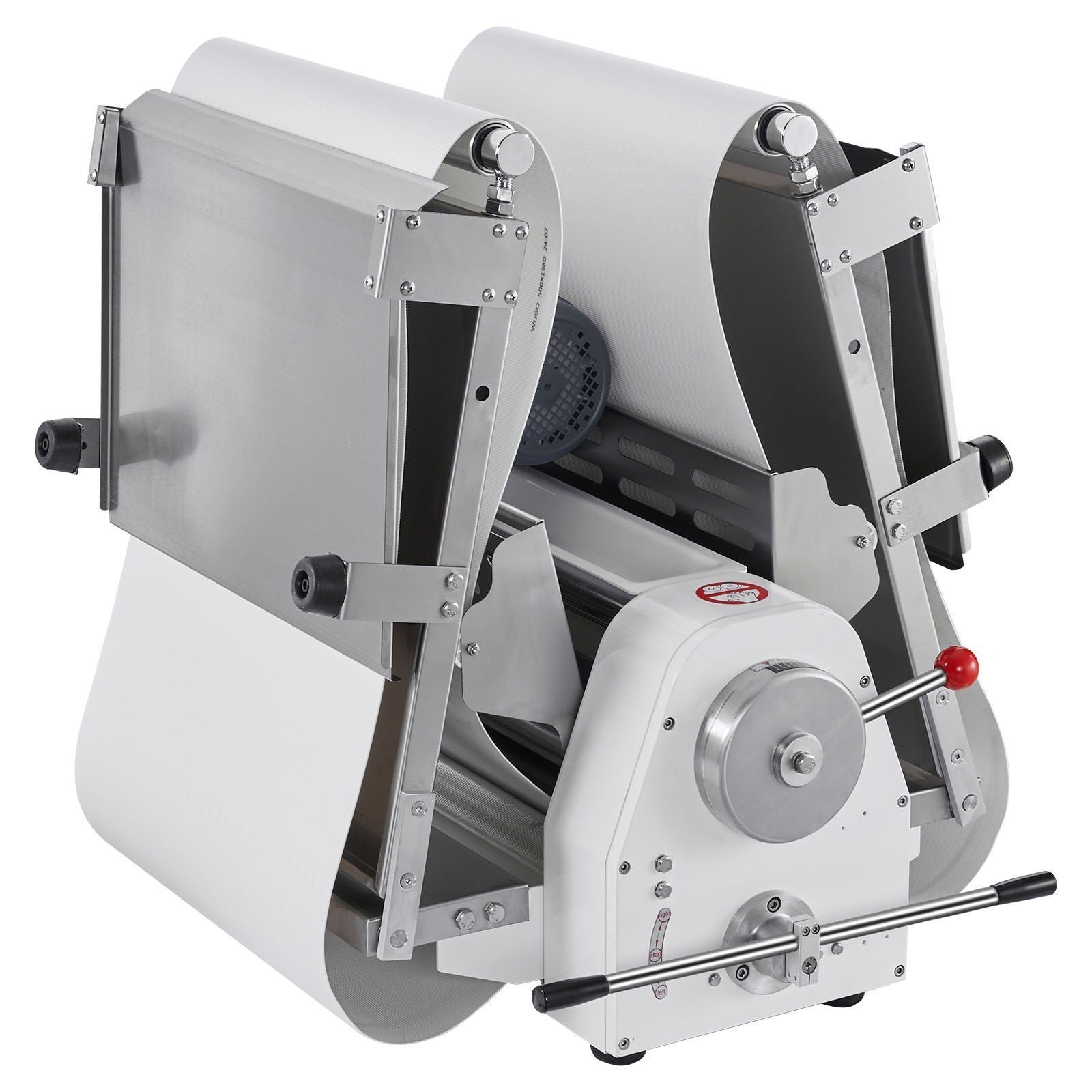 Efficient and Secure: Equipped with a high-quality, powerful motor, this dough sheeter quickly creates puff pastries and easily handles various culinary tasks. The thickened stainless steel construction ensures it maintains shape even after prolonged use. The protective mesh cover and large rubber feet design guarantee stability and secure during operation.